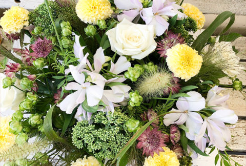 贈る人と贈られる人 お互いに笑顔になって 幸せを感じてもらえるよう思いを込めてお届けします。その時 その瞬間 「きれい」と手に取ったお花たち 色合いや質感も大切に・・・。どんなふうに どんなシーンで飾られるのか 思い浮かべながらお花をえらんでいます。お客様にお渡しするまで大切な商品です。 ご来店いただいてからお作りしますので15分~30分お待ちいただいております。ご予約の商品を優先してお作りしておりますのでお急ぎの場合は予めお電話でご予約下さい。お客様の時間に合わせてお渡しできますので予めのご予約をお願いいたします。