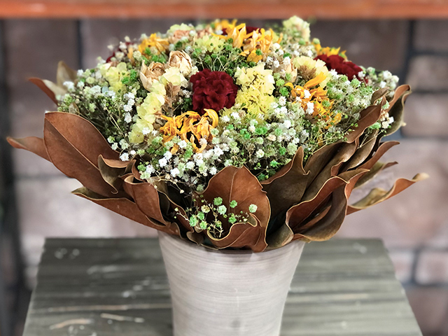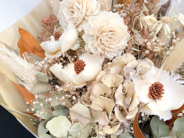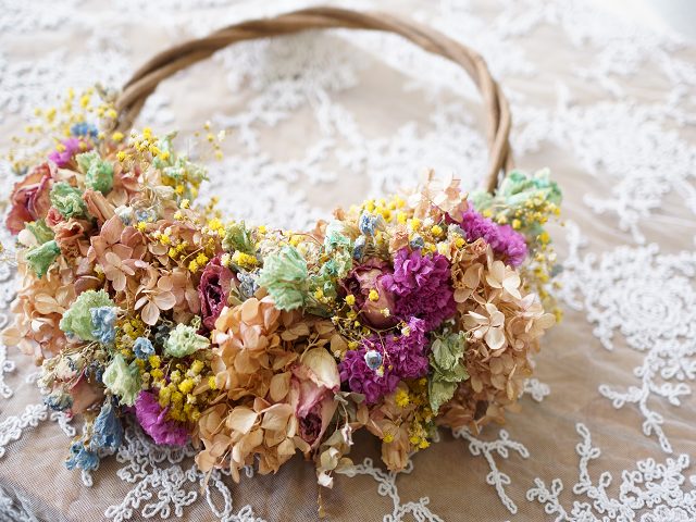 ドライフラワーは生花を乾燥させて仕上げます。日一日とお部屋の雰囲気にマッチし