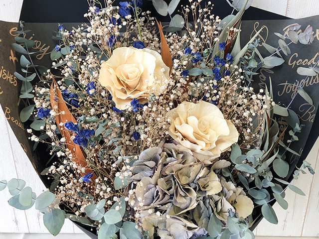 当店のドライフラワーは自家製で、オリジナルのドライフラワーです。